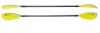 The kayak paddle has a unique take-down ferrule, that features a reinforced nylon material that can be positioned at 60 degrees left, right or inline for better control. Grooves on the ferrule prevent the buildup of sand and debris, maintaining a tight, trouble free fit. The shaft is vinyl wrapped black anodized aluminum and are ovalized at normal hand position. Paddle features a high impact asymmetrical plastic blade measuring 7 1/4" x 18 1/4".