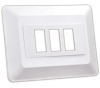 Triple switch base & bezel. Allows more space for thin walls. White. Outside Dim: