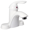 You will want to have the biggest faucet innovation in decades. With a one piece molded underbody formed with plastic resin and powder metal composites makes this a high performance unit. It has sturdy brass encased water connections and is LEAD FREE and EPA certified for up to 45% water savings. This single handle lav has flowing lines that add a tall, sculpture like touch to any bath. The smooth rounded surfaces make it easy to clean and keep shining like new. Ceramic disc cartridge will deliver years of reliable operation. 4"
