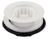 Fits up to a 2" drain opening. Constructed of durable plastic. Includes: strainer, basket, foam gasket, and locknut. Basket has female threads. White